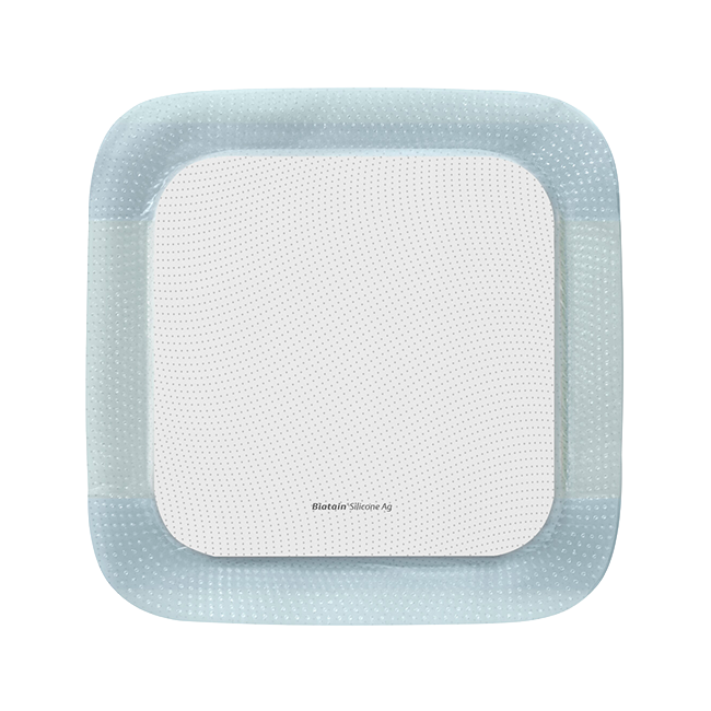 Biatain® Silicone Ag is a soft and conformable polyurethane foam dressing with silver, a semi-permeable, bacteria- and waterproof top film and a soft silicone adhesive layer.